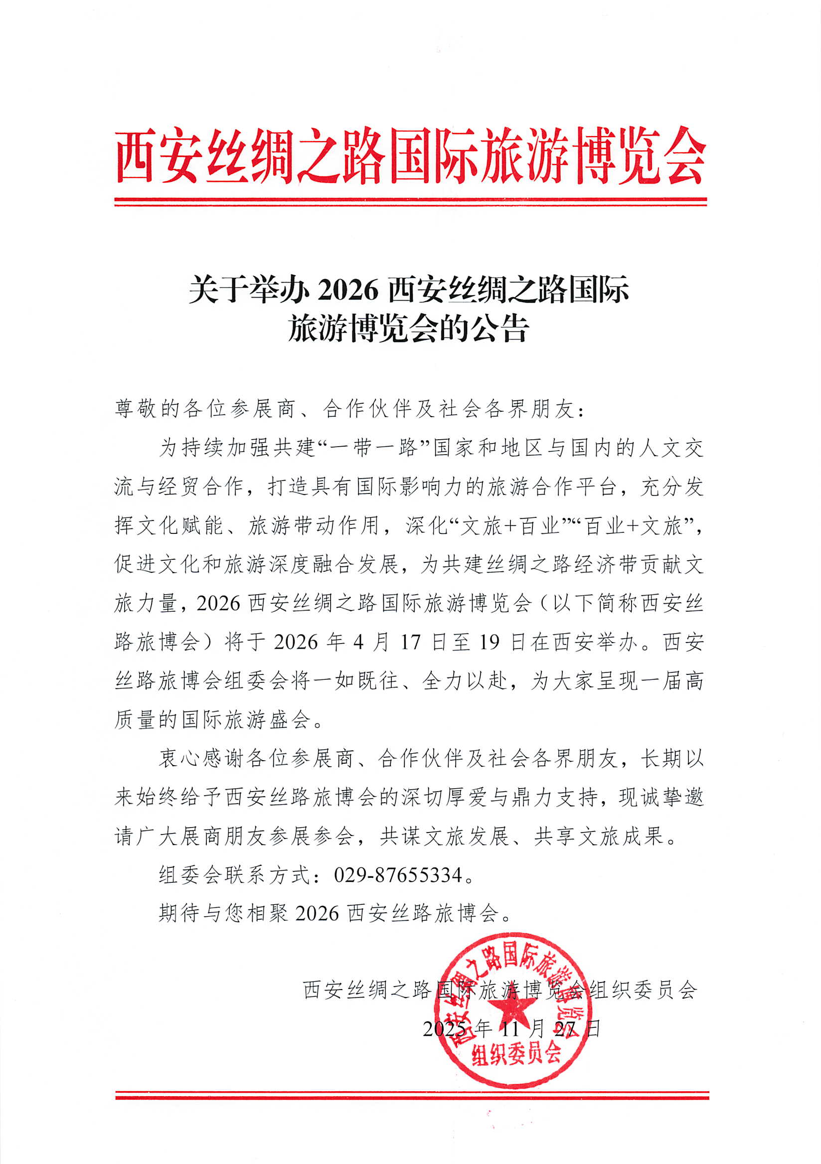 关于举办2026西安丝绸之路国际旅游博览会的公告